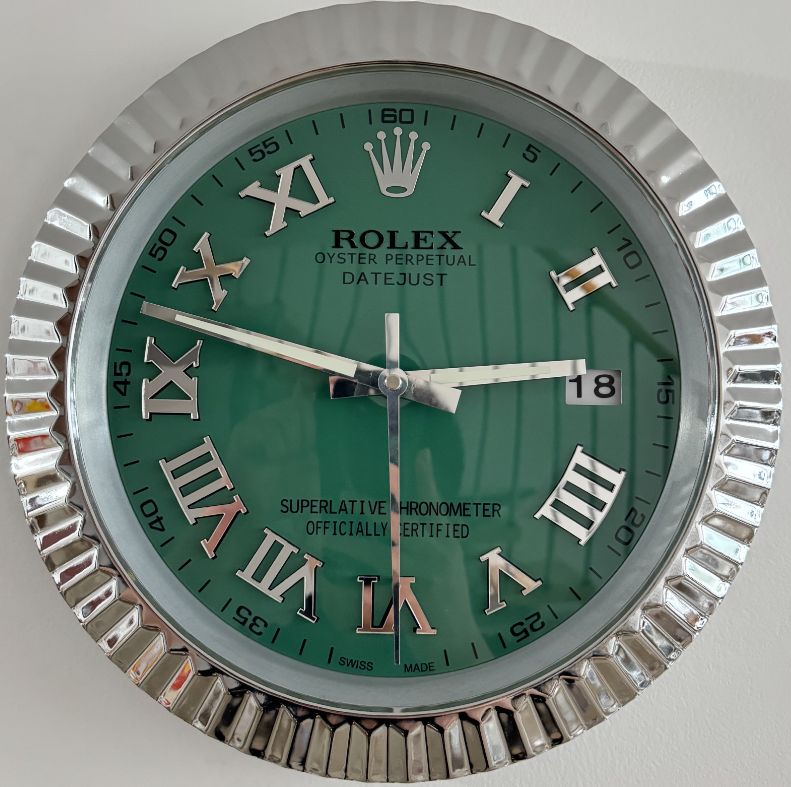 Datejust silver and green Motif Dial | 14 inches Wall Clock