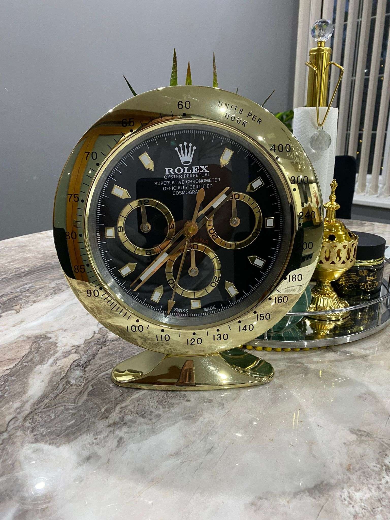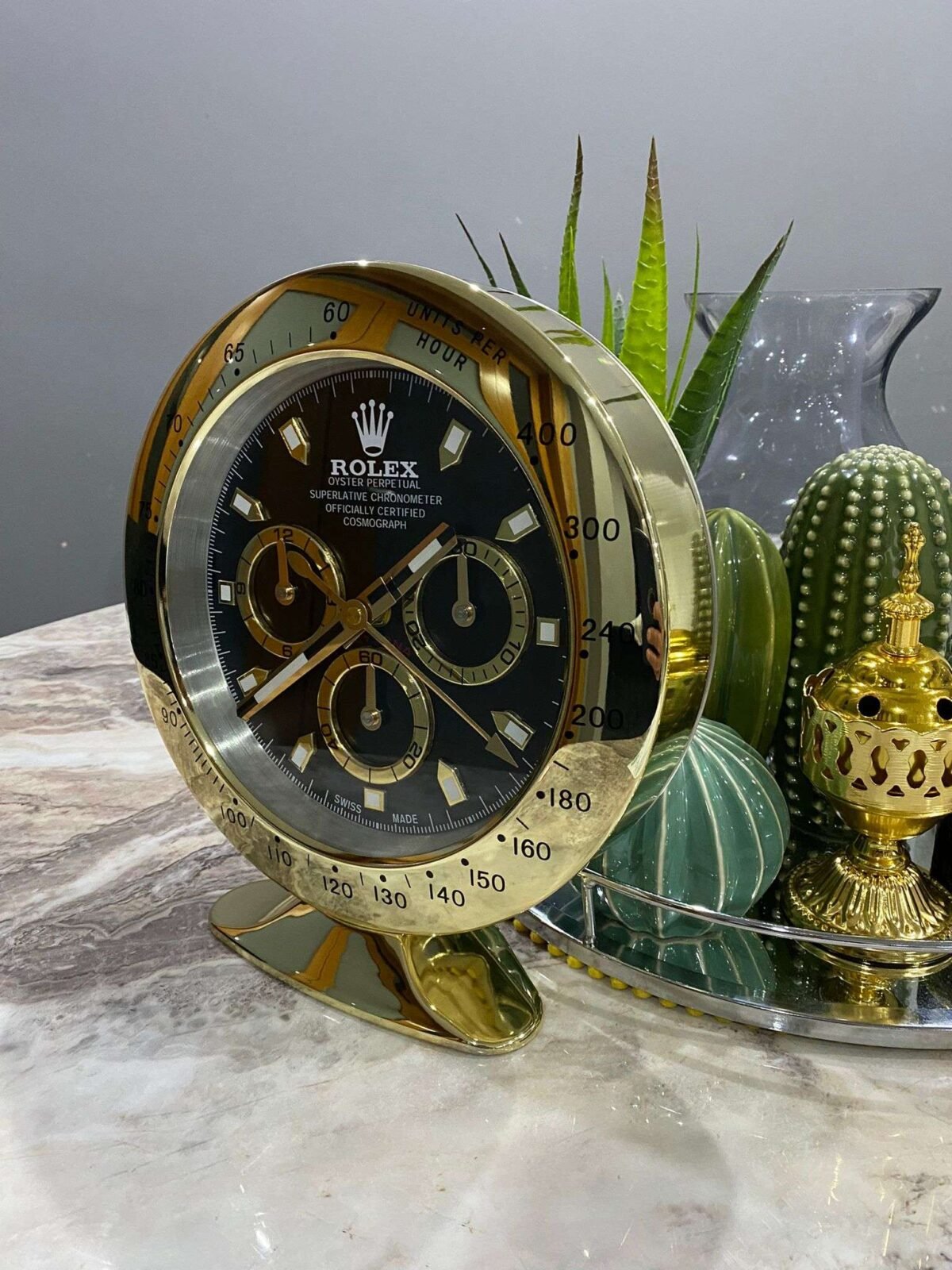 Be the first to review “Luxurious stainless steel Rolex Limited Edition table – Desk and wall clock DAYTONA in yellow gold bezel with black face” Cancel reply
